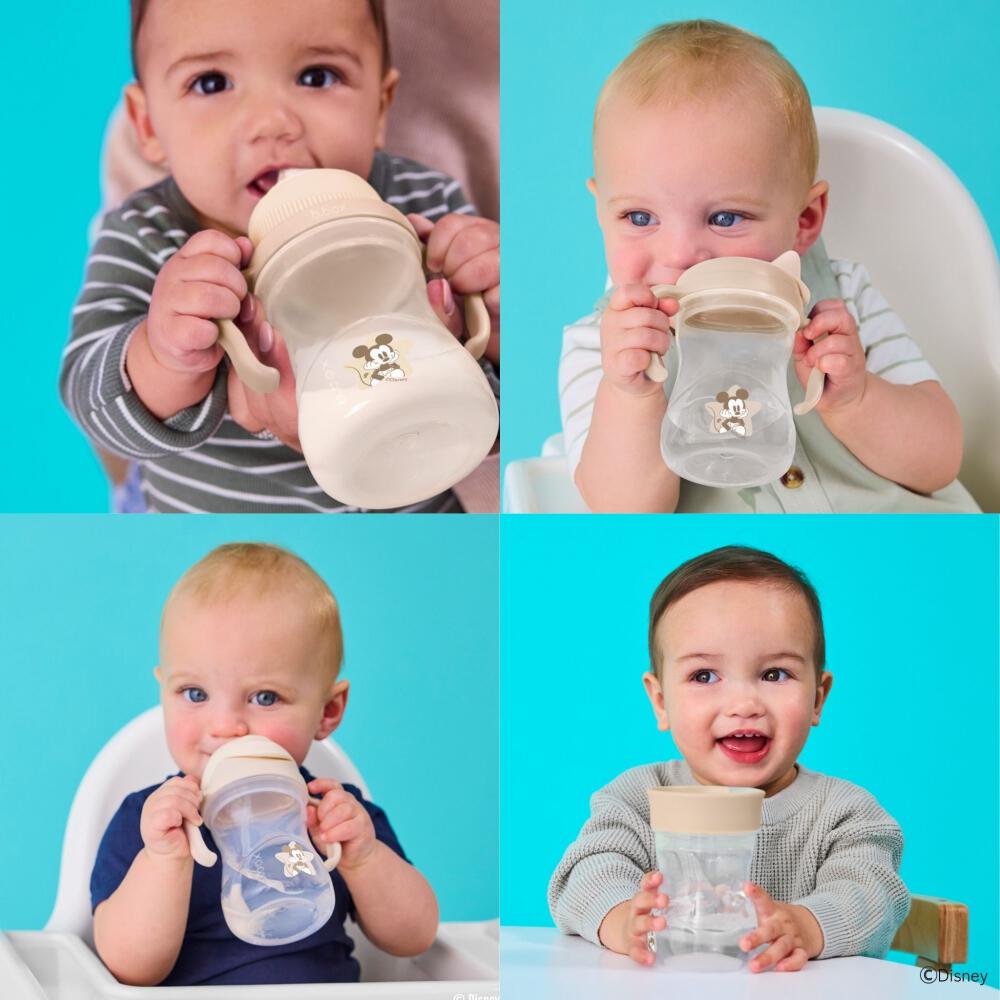 1カップに4種類の飲み口がついています。赤ちゃんの成長に合わせて蓋を交換するだけで、3ヶ月から12ヶ月以上の赤ちゃんのドリンクトレーニングに対応できます。