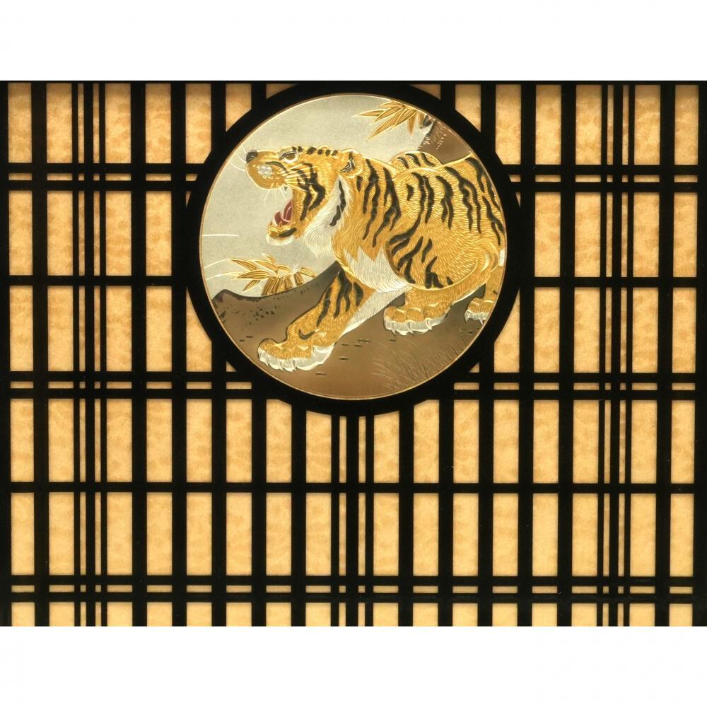 ケース背景:丸格子に彫金虎
