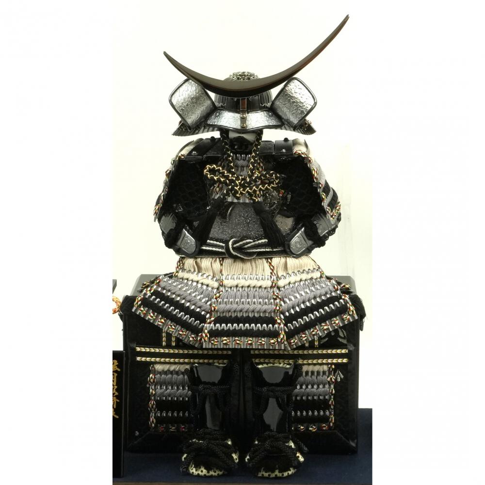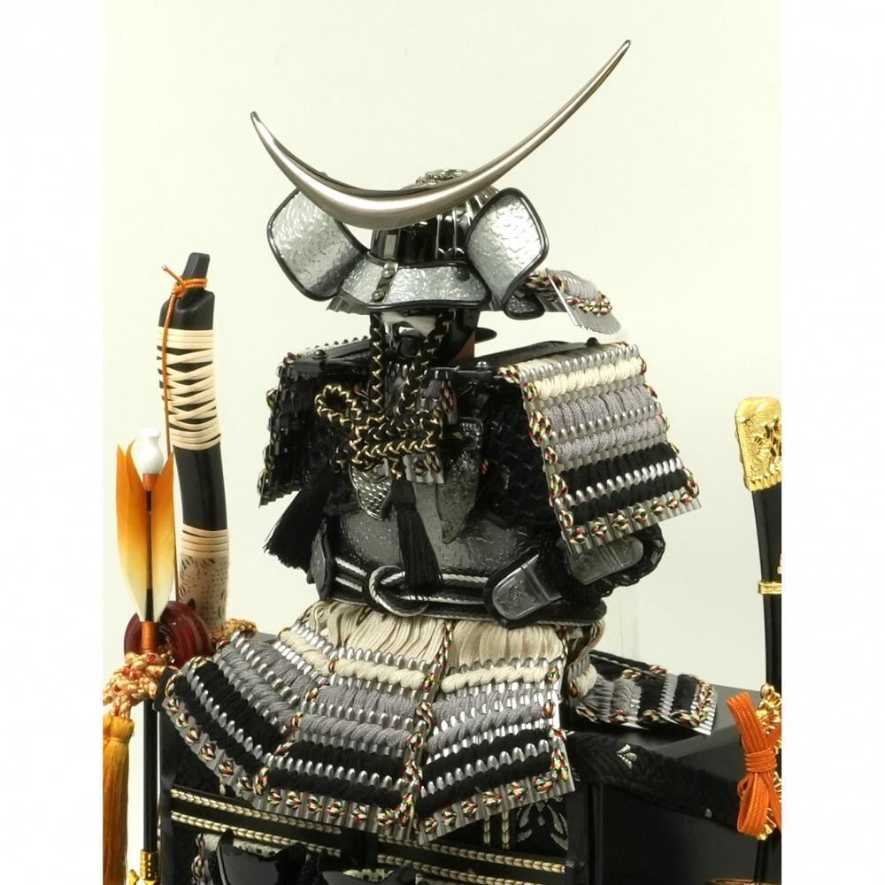 モノトーンを基調とした鎧兜の縅糸は裾へ向かって色が濃くなる黒裾濃です。