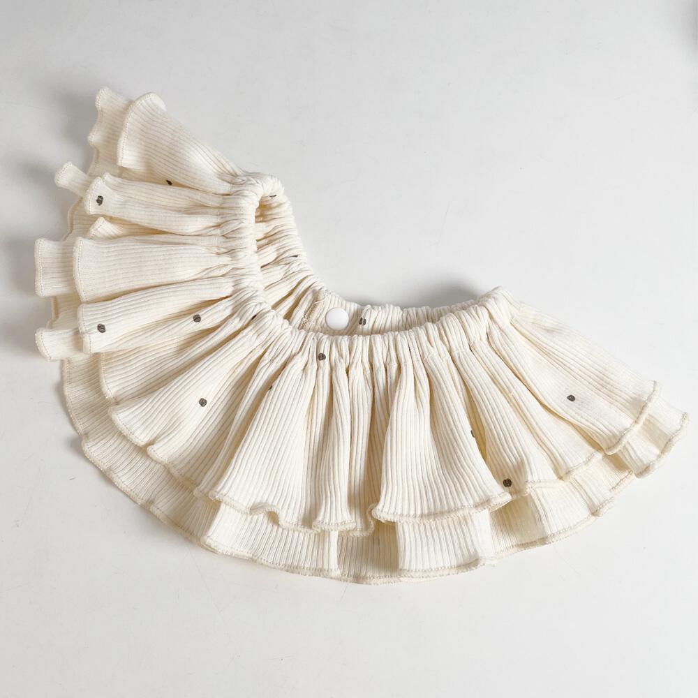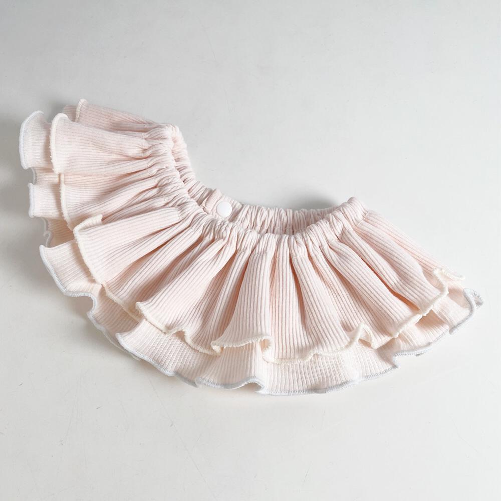 ぐるりと入ったたっぷりギャザーのフリルがふんわりと揺れ、着けるだけでコーデが華やかに。