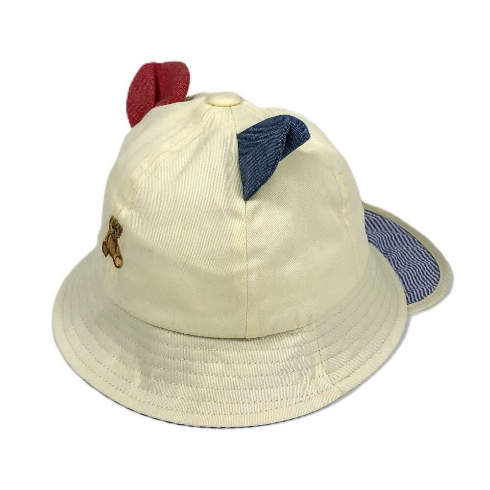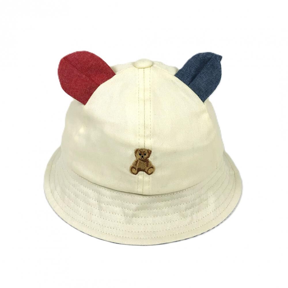 人気のぬいぐるみクマ柄の刺繍が正面に入った、本体アイボリーカラーのメトロタイプハット。