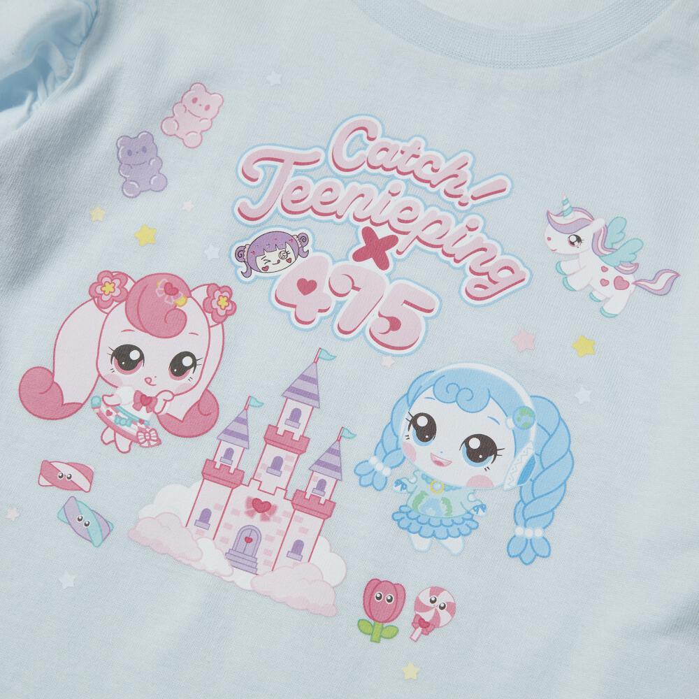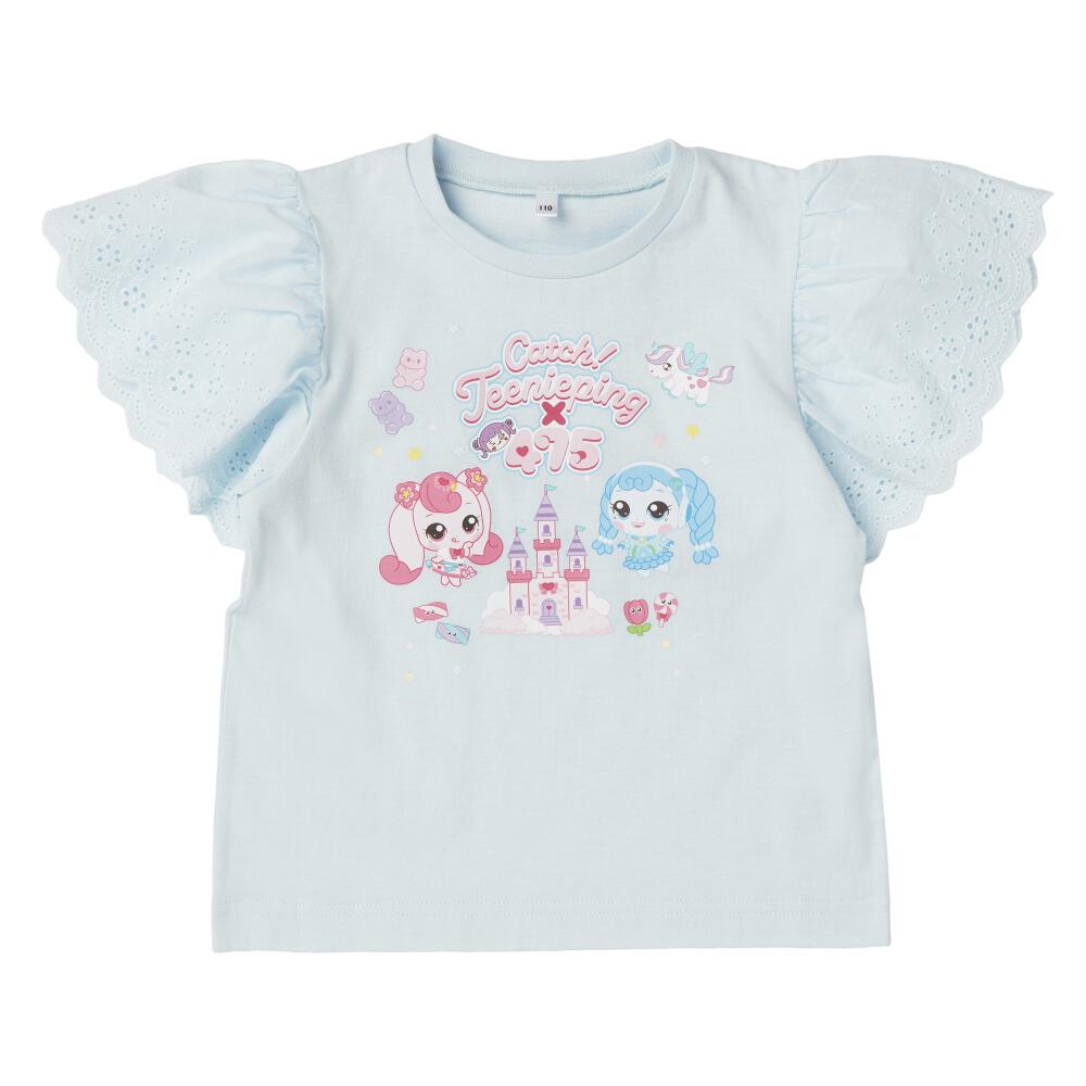 【ティニピン×しなこ】半袖Tシャツ 袖レース 天竺 ライトブルー×100cm