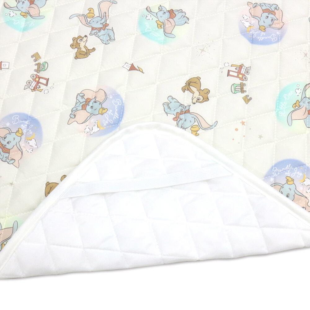 裏側の四隅にゴムが付いているので、レギュラーサイズのベビー敷きふとん(70×120cm)にぴったりフィットします。