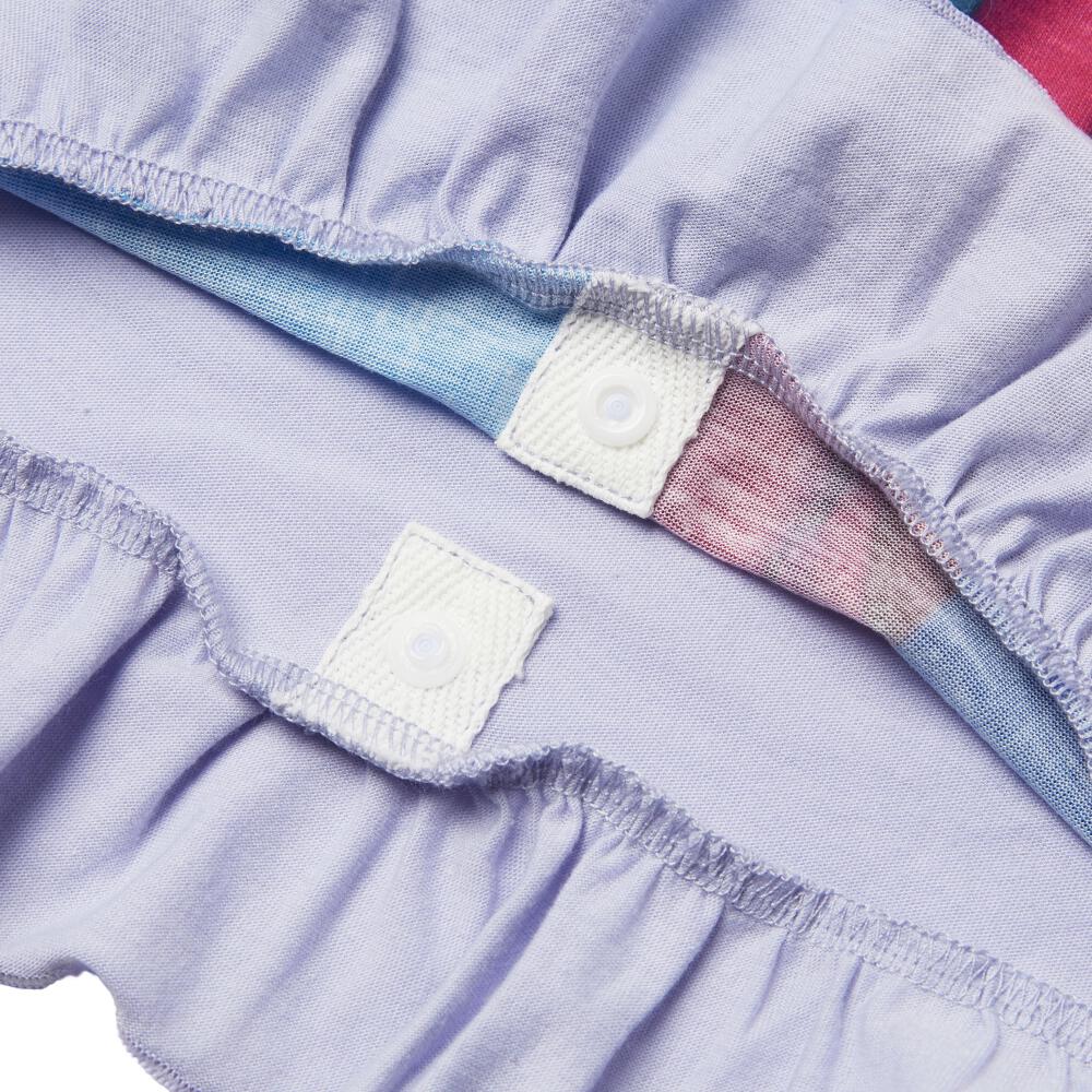 鮮やかな転写プリントと裾のギャザーがかわいいポイントです。