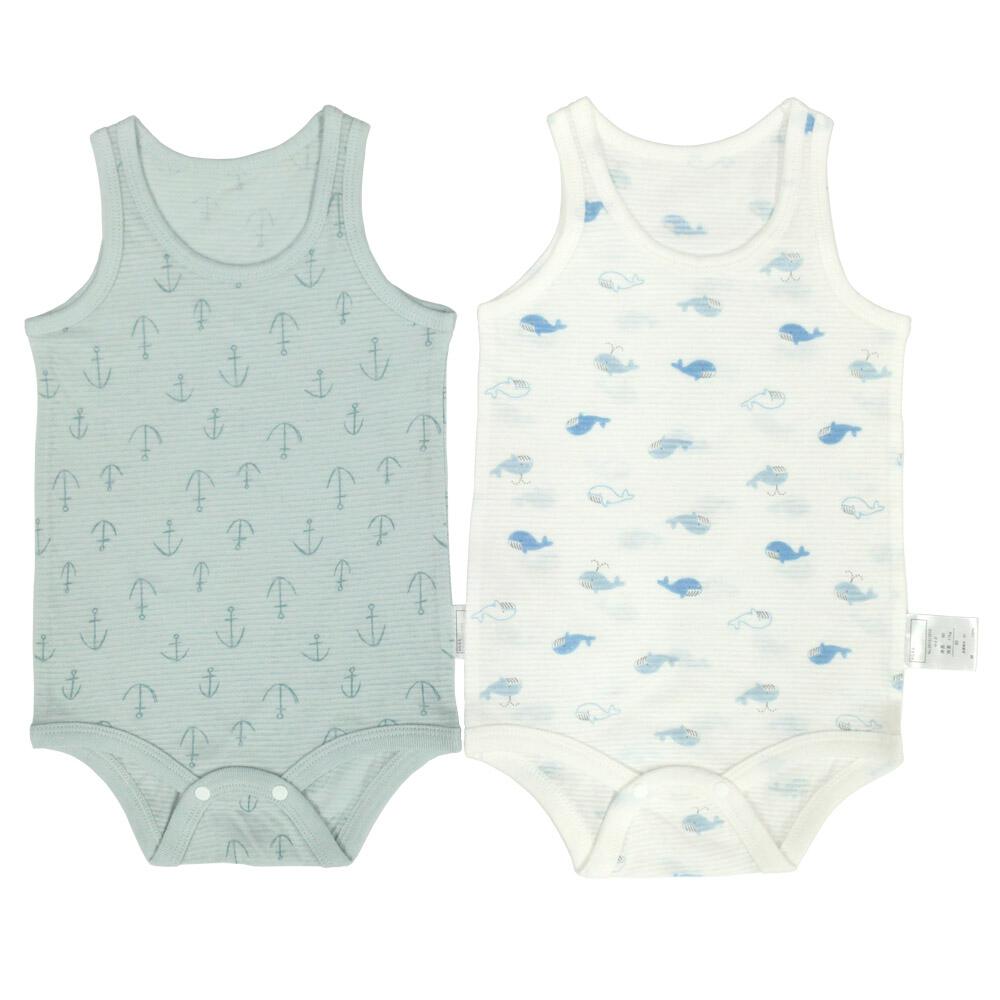 ベビーザらスオリジナルの2枚組袖なしロンパス肌着です。