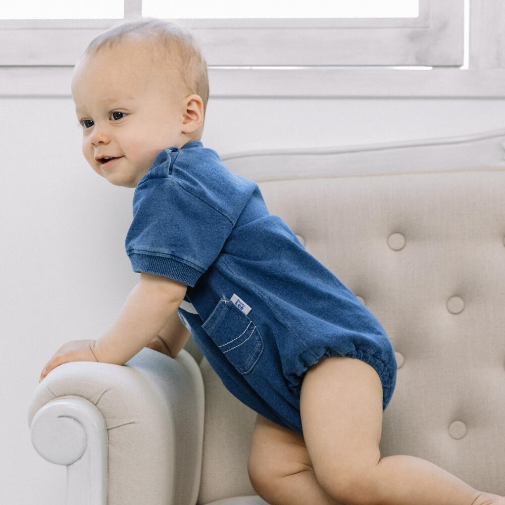 BUDDYLEE 半袖ボディスーツ インディゴ染め ブルー×70cm