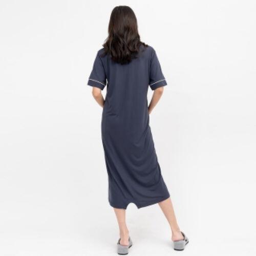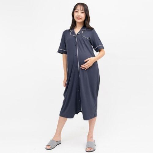 胸元のボタンがスナップ仕様なので、さっとバストが出せて大変便利です。裾のスナップボタンを留めると、寝ているときや回診時などまくり上がりの防止になります。