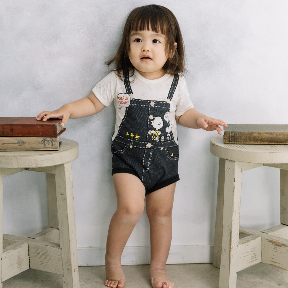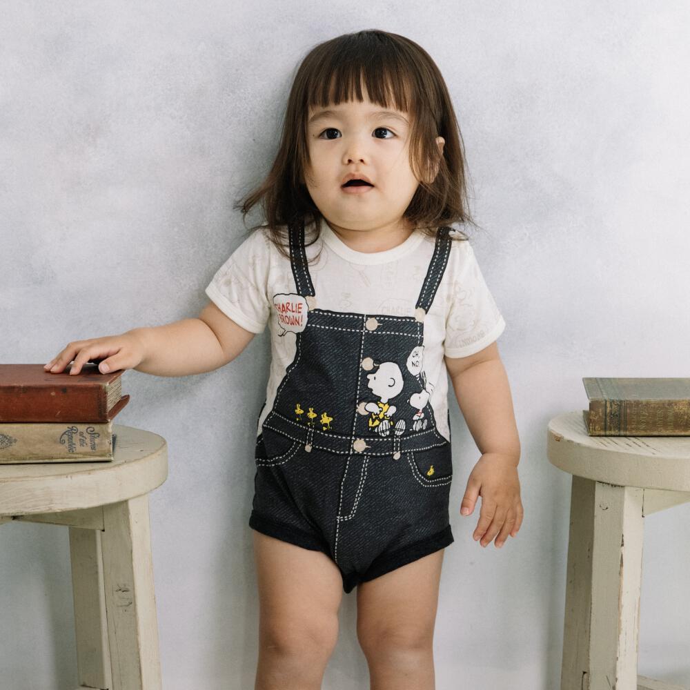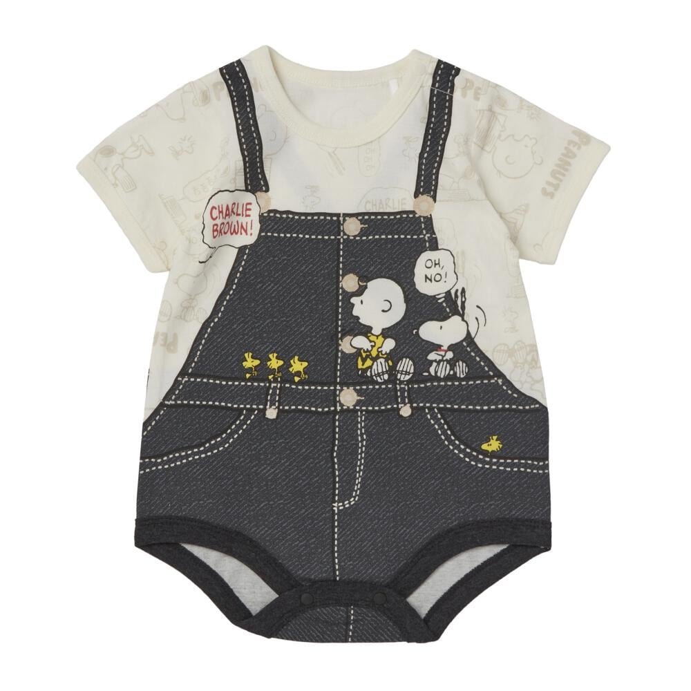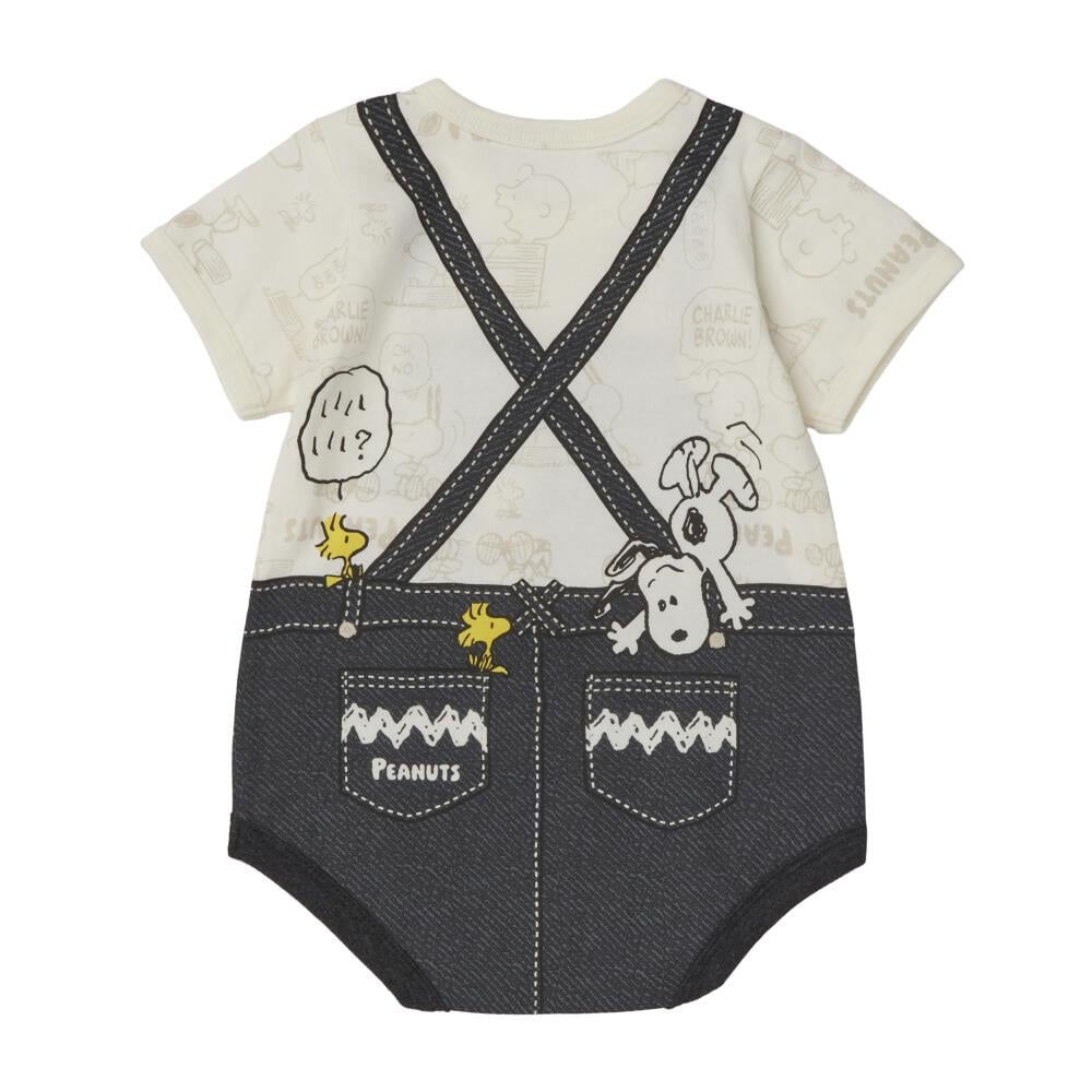 SNOOPY 半袖ボディスーツ サロペット風 スヌーピー ナチュラル×80cm
