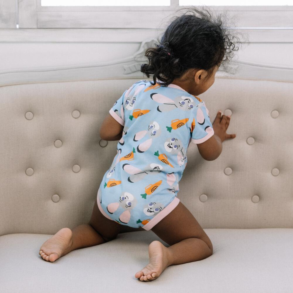 ディズニー ズートピア 半袖ボディスーツ 総柄 ジュディ ブルー×70cm