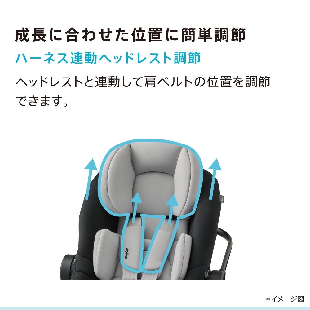 ●ヘッドレストと連動して肩ベルトの位置も調節可能。成長に合わせて正しい位置にフィットします。