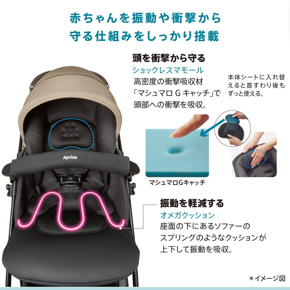 赤ちゃんを振動や衝撃から守る仕組みをしっかり搭載。