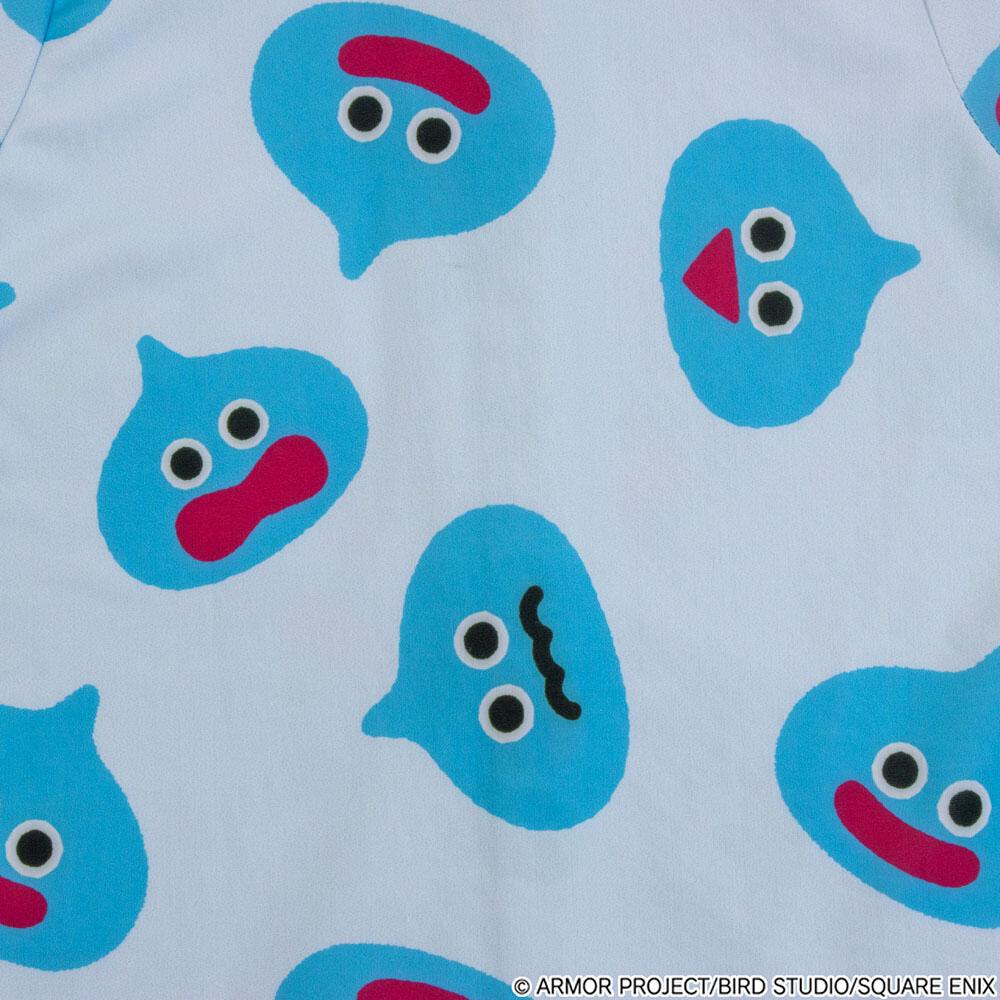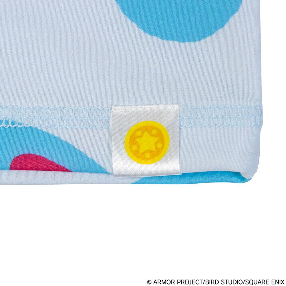 ドラゴンクエスト知育絵本「スライムぴぴぴ」に登場するスライムたちがデザインされたラッシュガード。水あそびにもぴったりな涼しげなデザインです。