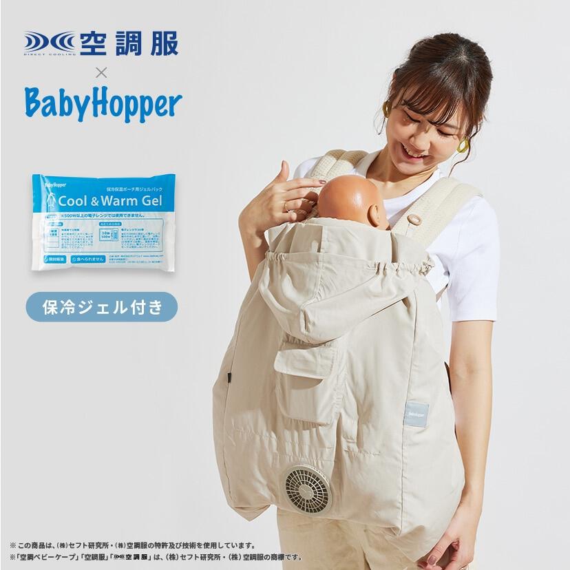ベビーケープに付いた小型ファンで、ケープの中に外気を取り入れ、体の表面に大量の風を流すことにより、汗を気化させます。
