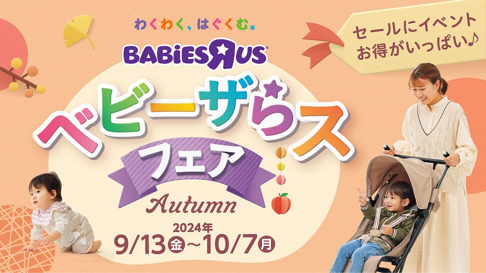 日本トイザらス株式会社(本社:神奈川県川崎市、代表取締役社長:李 孝)が運営するマタニティ・ベビー用品の総合専門店のベビーザらスは、出産・子育てを応援する『ベビーザらス・フェア』を9月13日(金)~10月7日(月)に開催いたします。お得がいっぱいのセールやプレゼント、キャンペーンを実施するほか、店舗においてママ・パパ&ベビー向けの店内イベントも開催いたします。