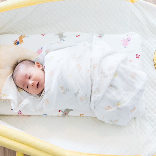 肌触りの良いタオル・ガーゼは、お風呂や寝かしつけ、外出時、授乳時など幅広く活躍。